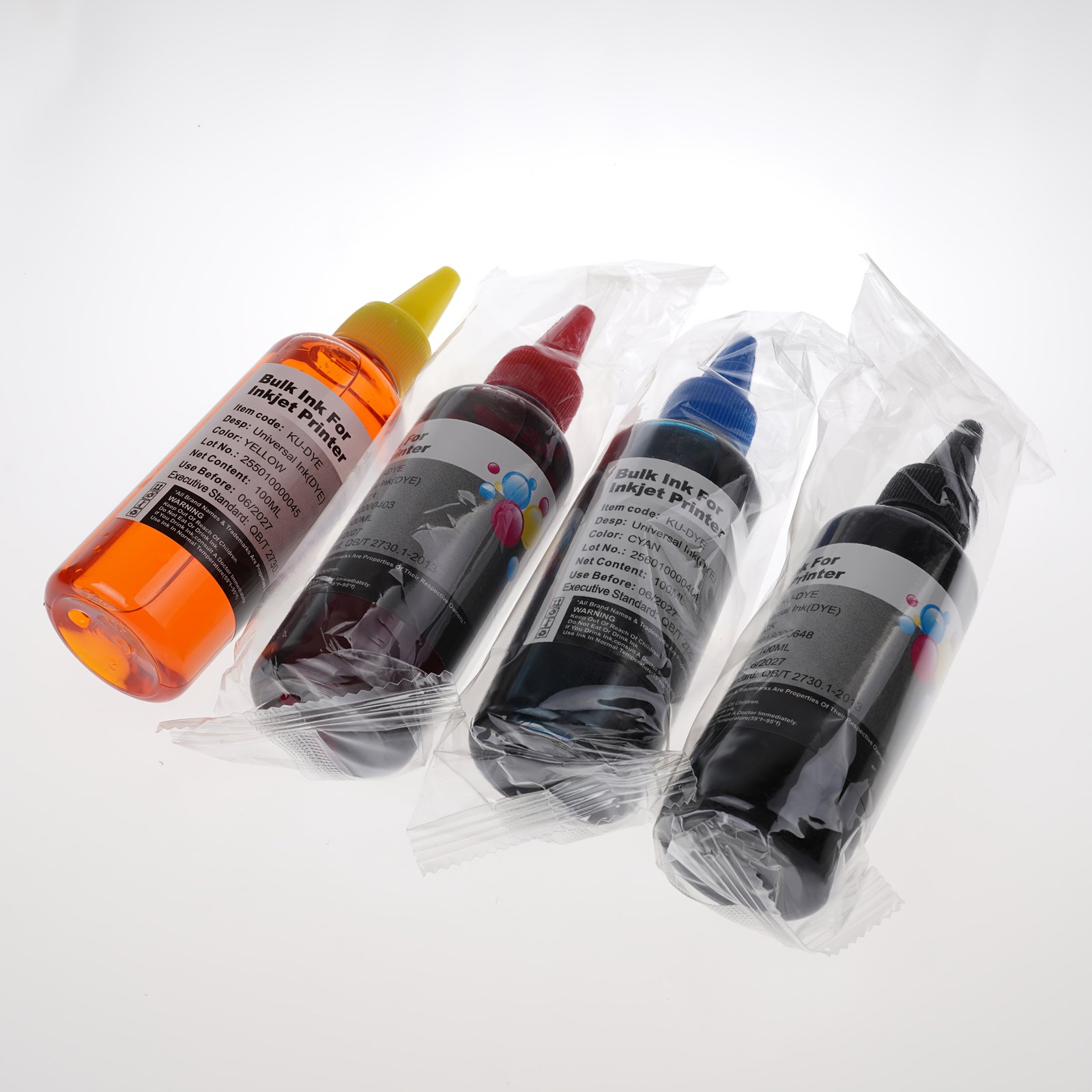 Universal Refill Dye Ink Kit 4x100ml (3.38oz) – Compatible with Epson, Canon, HP, Brother Inkjet Printers (Black, Cyan, Magenta, Yellow)