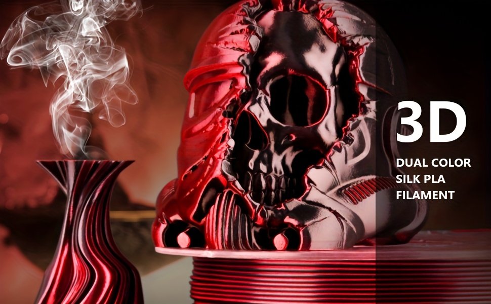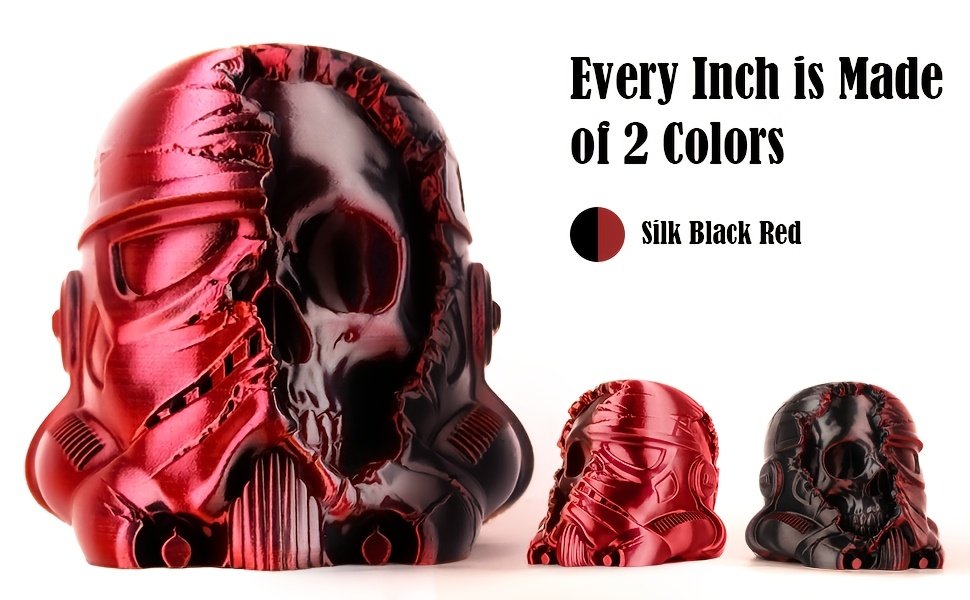 Black & Red Dual Color Silk PLA Filament 1.75mm – Color Changing Shiny 3D Printer Filament (200g/0.44lbs Spool)